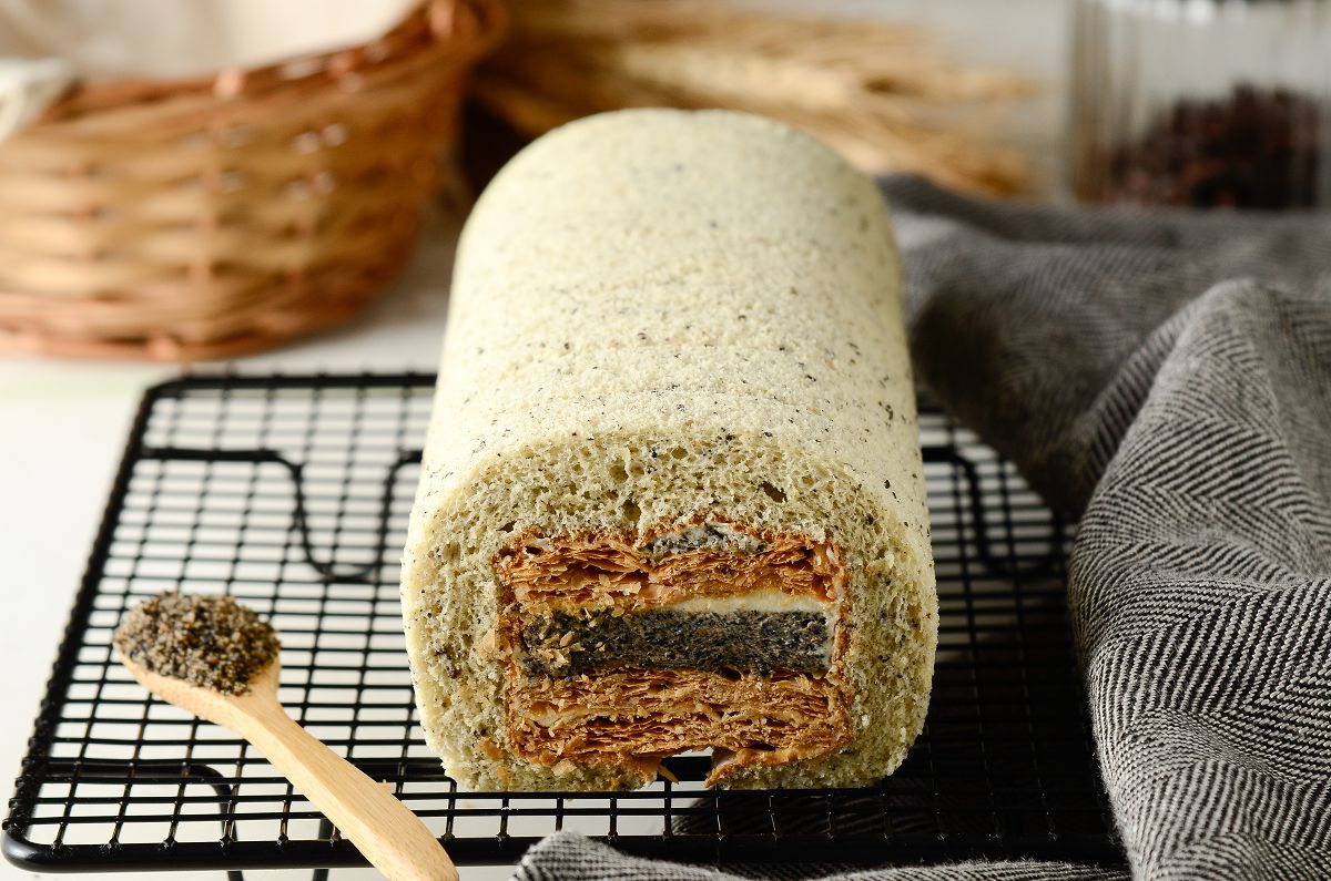 拿破崙蛋糕也稱為千層派蛋糕(mille-feuille),酥皮製作過程繁複。將麵皮包裹上安佳奶油片,不斷重複對摺桿平,再送入烤箱烘烤出多層次的酥鬆派皮,層層疊疊的酥脆口感,是拿破崙蛋糕最大的迷人之處。即使冷凍後再回溫,也不會使派皮軟化而失去口感。香濃的內餡,加上酥脆千層與柔軟的蛋糕體豐富口感的極致呈現。【芝麻拿破崙】使用自製香濃芝麻醬,使用現打黑芝麻粉添加少許奶油,搭配外層芝麻戚風蛋糕,風味濃郁。
